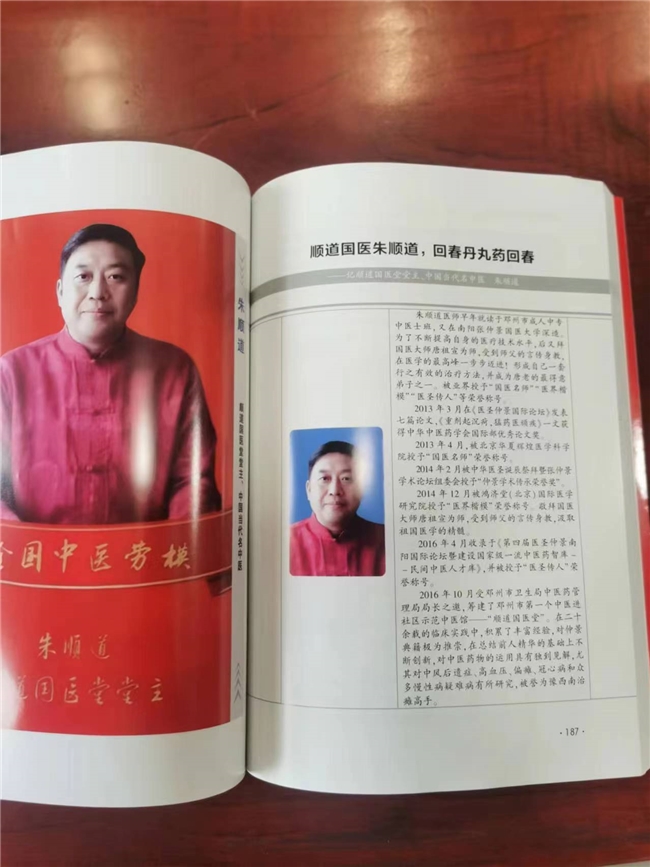 宁愿架上药生尘,但愿天下人无病。朱顺道安神定志、医德高尚、专注求索,悬壶济世、造福苍生、卓越的医术,为无数患者带去了新生的希望。慕名而来的患者中包括不少外籍人士。中医的传承与发展,首先重视医德的培养,人合化于天地,万物莫不尊道,而贵德。德体现在工作中得到了群众的信任,患者的赞誉,社会的认可,获赠牌匾、锦旗数面,是对其医德、医技最好的总结。