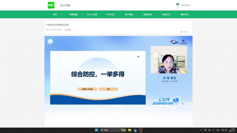 (本报讯) 2025年7月6日,以"2型糖尿病创新治疗与综合管理策略"为主题的CKM综合管理培训班在线上平台成功举办。本次会议汇聚内分泌代谢领域权威专家,围绕新型口服GLP-1RA临床应用、智能降糖技术及代谢综合管理等前沿议题展开深入研讨。来自全国各级医疗机构的60余名临床医师在线参与,共同探索糖尿病管理的新技术、新方法与新理念。