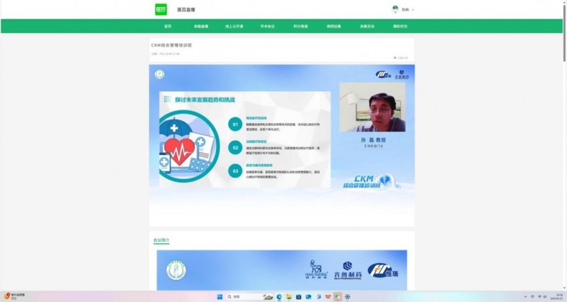 (本报讯) 2025年6月21日,一场旨在深度解析糖尿病最新诊疗策略、聚焦心血管并发症管理的学术盛会——“CKM综合管理培训班”在线上成功举行。本次会议汇聚了国内内分泌科、心血管科等领域的众多知名专家与学者,通过专题报告、病例分享与热点讨论等多种形式,围绕2024年美国糖尿病协会(ADA)指南更新、糖尿病合并冠心病的防治策略等核心议题展开了深入而热烈的交流。共计60余位来自全国各地的临床医师、护理专家等参与了本次培训,共同见证了这场学术思想的碰撞与融合。