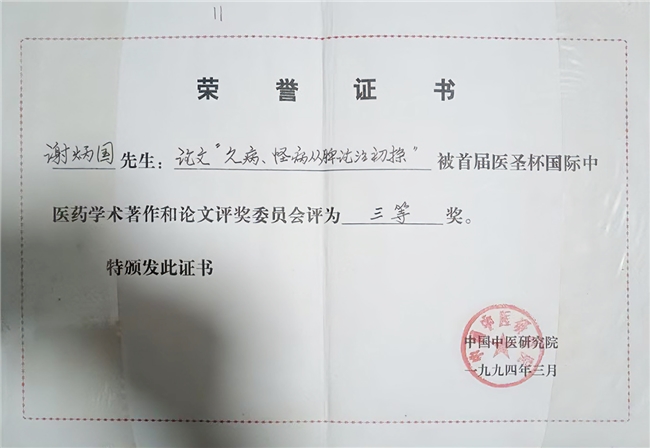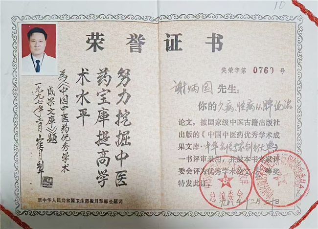 谢炳国的业绩与精神早已声名远扬,上世纪八九十年代,《中国中医药报》《人民日报·海外版》等十余家媒体先后报道其事迹,其名字被收录进《中华名医·当代版》等多部权威辞书,还被十家医学杂志聘为特约记者和通讯员,成为中医药领域的标杆人物。