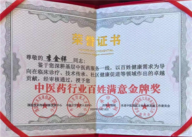 案例是生动的注脚:转业军人戈某某婚后多年不育,经李金祥调理后喜得贵子,两年后为了儿女双全,再次调理喜得千金;邻居王某如法炮制,如愿凑成一个“好”字;三代单传的任某某一家,在他的帮助下圆了香火梦;更有患有干眼症的张某,不仅治愈了疾病,还通过系统调理如愿生下了健康的女娃。