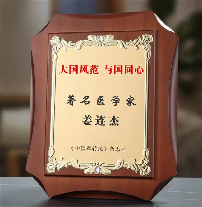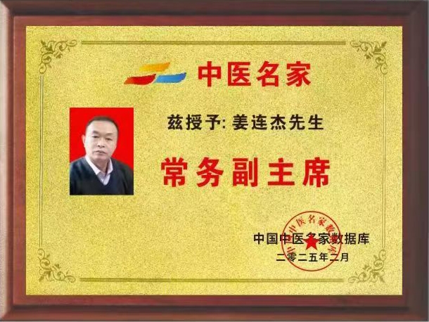 同时,作为中国民间中医医药研究开发协会常务理事、中医治未病发展联盟副秘书长,姜连杰积极推动中医药在预防医学领域的应用。他常说:“上工治未病。”在他的大力倡导下,“未病先防、既病防变”的理念更加深入人心。因其在中医文化传承中的卓越贡献,他被授予 “国医楷模” 、 “中医文化传承人” 等光荣称号,并作为世界非物质文化遗产研究院特邀院士,为中医药这一古老瑰宝的现代化、国际化传播贡献力量。
