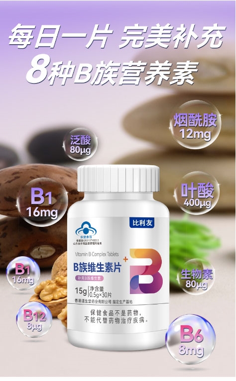 比利友维生素 B 族,主打 “权威合规、全效配比、温和易吸收” 的核心定位,聚焦现代人群营养补充需求,以扎实品质成为全年龄段信赖的 B 族维生素补充剂。
